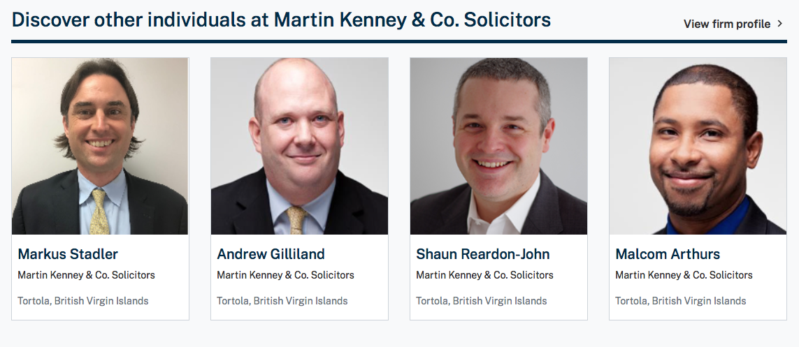 “We’ve used Martin Kenney & Co. to deal with litigation in the British Virgin Islands and the firm has been very helpful there domestically but also in the wider asset recovery strategy globally. The firm can contribute its experience and expertise.”